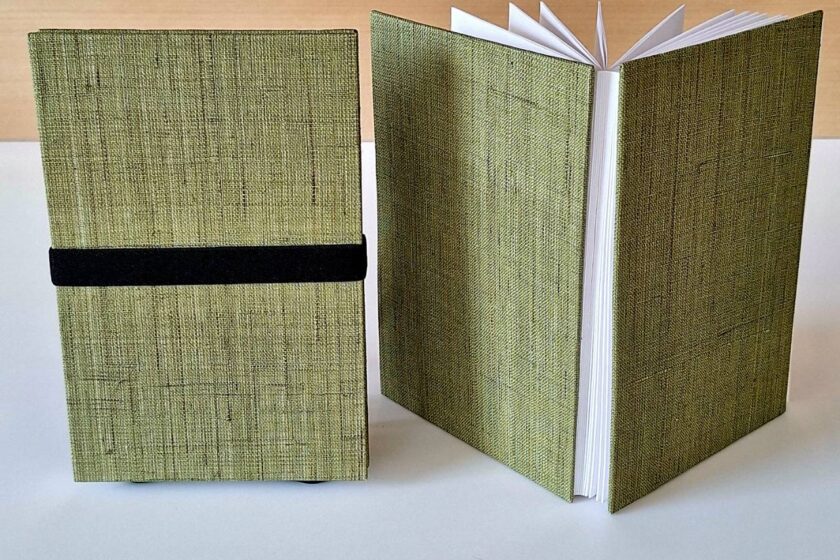 植物モチーフの焼き付け模様が印象的な、落ち着いた雰囲気の一冊。